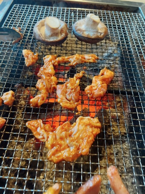 オーダーはいつも通りな感じでレバー、塩焼き、タレ焼き、ハツ、プレミアム椎茸、鶏ソーセージ。ホルモンを2人前ずつお願い!