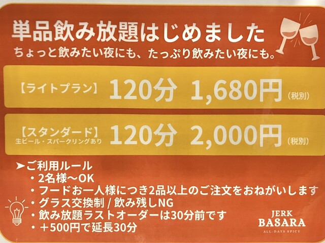 飲み放題(2種類、食事1人2品ずつの注文必須)であれこれ飲んで食べて…