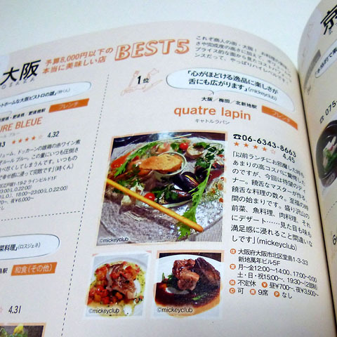 ミッキーの写真と記事が、ムック本「食べログの美味しいお店BEST100」に掲載される! (2014/10/23)