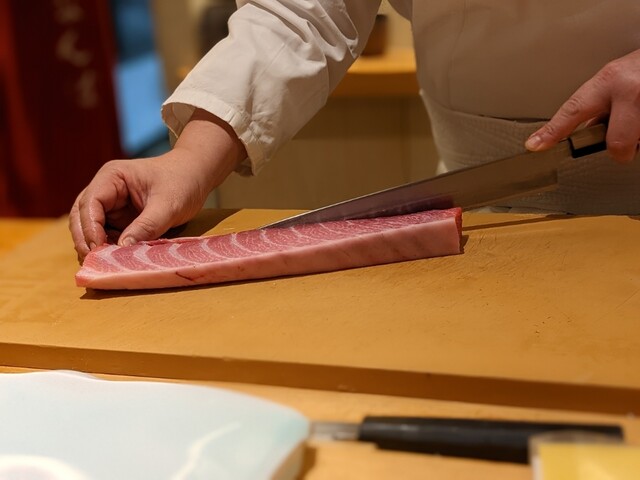 43,000円のコースに、松茸と秋刀魚の炊き込みご飯、大トロを追加でいただきました。