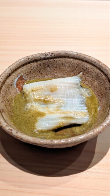 → 勝浦産の大きな黒あわびを2つの切り方で食べ比べます 長谷川稔グループ得意の肝ソースは相変わらず頭がおかしくなりそうなくらいおいしいです。