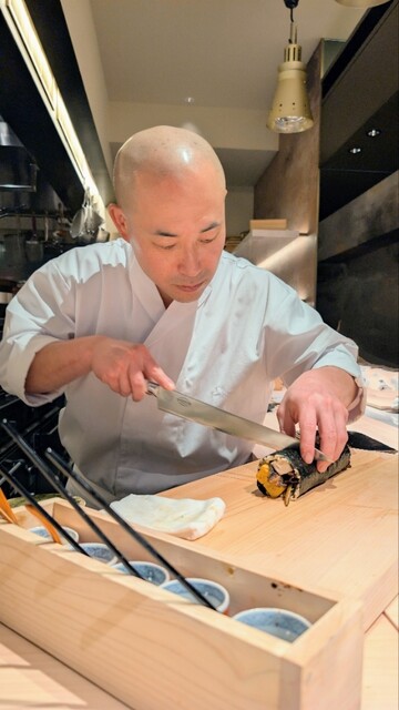もともとはアメリカ ロサンゼルスのホテルにてお寿司を握られており、日本に戻られてからは 銀座の鮨村山 さんや、 宮崎県の 一心鮨光洋さんで修行されました。
