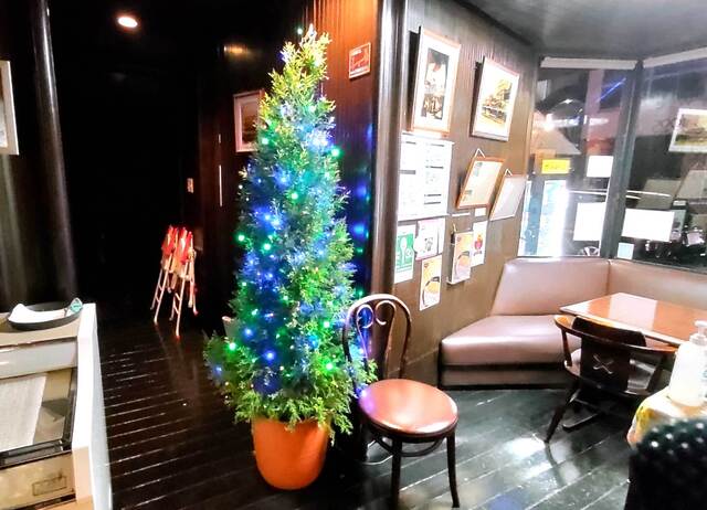 夜だったせいもあり、お店の外までクリスマスツリーの灯が漏れていました。