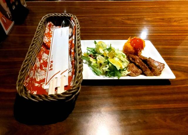 牛ハラミステーキは柔らかく、カニクリームコロッケはカラッとしていてサクサクホクホクです。