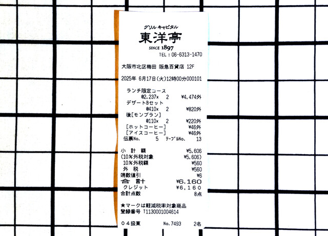 お歳暮を出しに阪急百貨店に行くと夫に伝えると、お昼は東洋亭にしようと言うので快諾!!