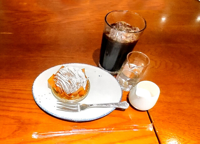 「デザートBセット」に+110円で「モンブラン」、46円でアイスコーヒー