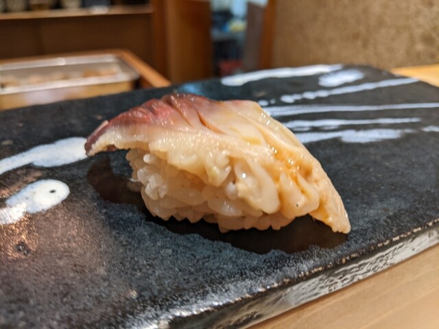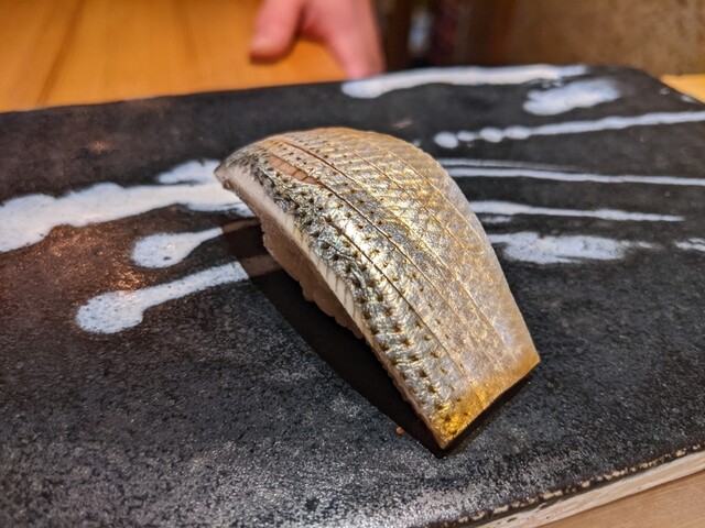 御覧の通りの素晴らしい包丁捌きの切り身やツマミを、おまかせでちょこちょこいただきながら、これまた大将おまかせで日本酒をいただき、鮨で〆る。