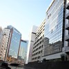 館内ロビー 回転扉 & 上部窓ガラスを見る。
