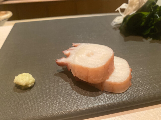 出汁に浸かって登場、コテコテしていませんでしたがそれは温度のせいなのか、個体差なのかわかりませんが山葵と一緒が美味しい。