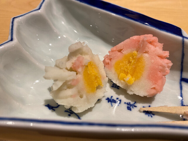 鯨のるいべと鰤。鯨は冷凍のものを買ってきても美味しくないそうで、るいべにするのが良いのだとか。なるほどなるほど、少し凍った部分が口の中で溶けていく。馬刺しの油が溶けていくのと同じような感覚。いぶりがっことすりおろし大根ののった鰤。わさびと昆布醤油をつけながらいただきます。いぶりがっこがかなり薄く切ってあり、主張しすぎない。これが鰤とマッチするんだから不思議。