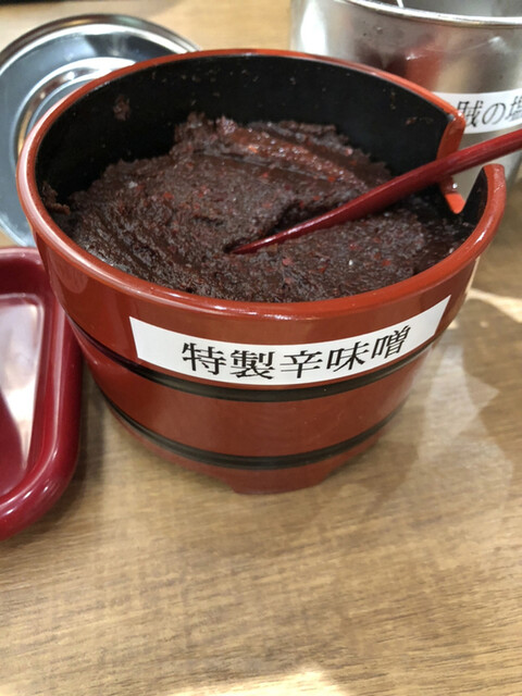 テーブルに置いてある副菜のイカの塩辛、大根漬物、にんにく韮唐辛子が食べ放題なのが嬉しいですね。