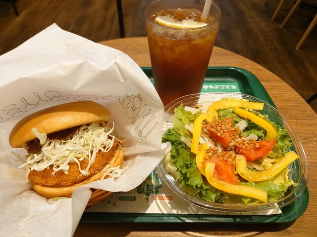 【期間限定】エビグラスソースの海老カツバーガー+サラダ+アイスティー キャンディ茶葉(レモン)