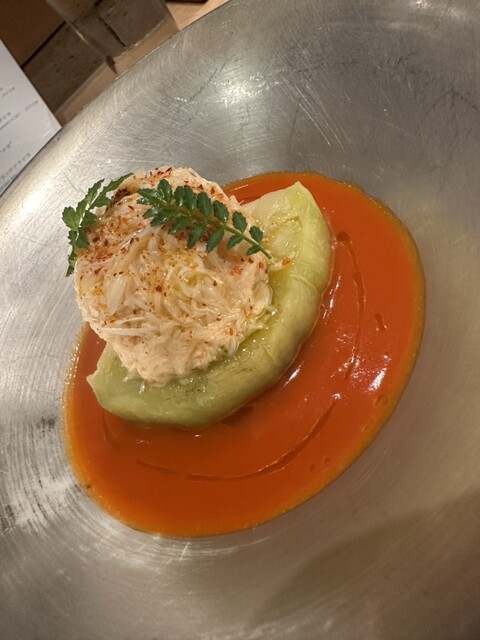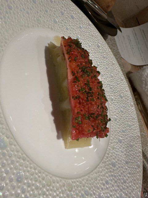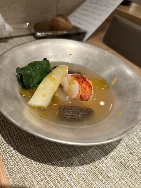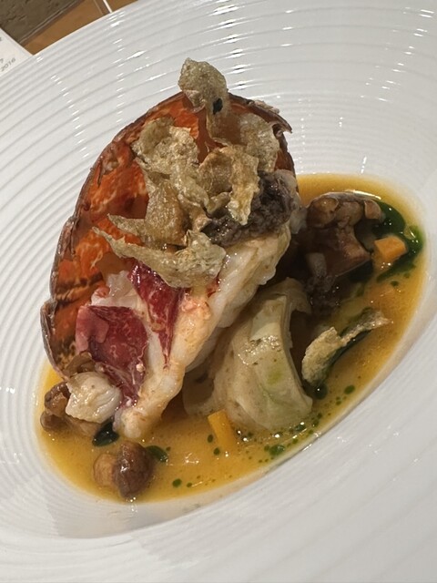 甲殻のサラダ仕立て、大好物のひとつですが、オマールの甘味が絶品で、すっきりとさせるお野菜と酸味の味付け、バランスがやはり素晴らしいです