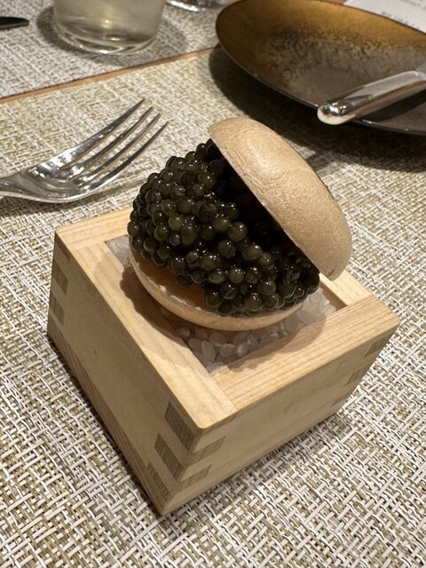 末廣もなかキャビア 雲丹やイクラでいただくことが多いもなか クリスマスディナーでは、惜しみなくキャビアの盛り 美味しいキャビアは沢山食べても飽きないし、キツく無い