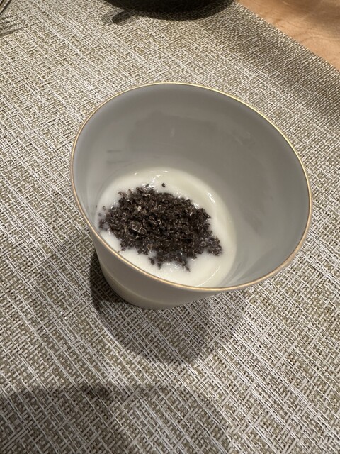 熊本 菊芋 黒トリュフ 芋の甘みに、トリュフの香りと甘さが重なり、いつもよりさらに豪華なアミューズがはじまりました