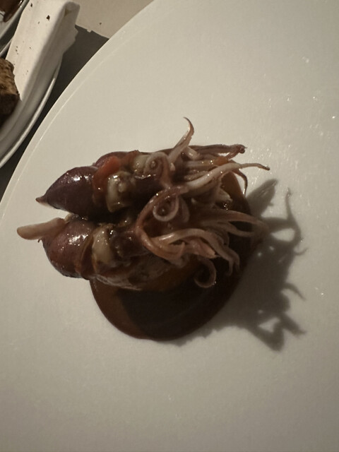 ホタルイカを並べてましたが、今季はほうれん草を詰めたパイの上にホタルイカさまが乗っかり、ホタルイカのワタの茶色系ソース、旨味濃厚で、バジルソースで爽やかさをアレンジ 2種のソースが抜群でした