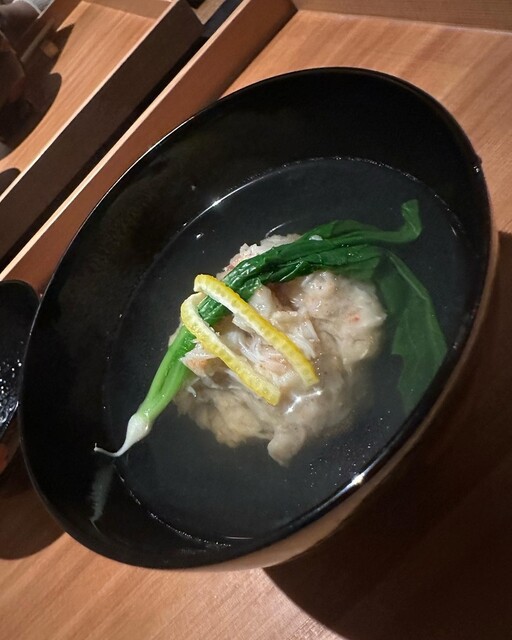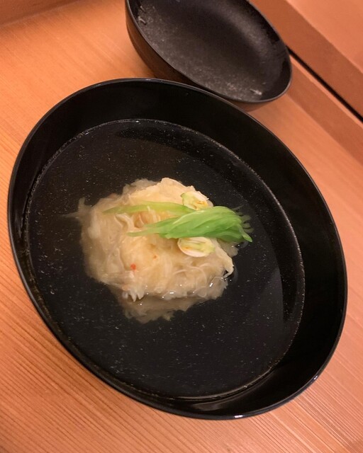 お椀は、松葉蟹と鱶鰭のしんじょう。