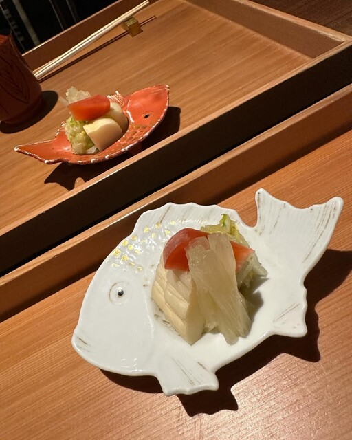 お漬け物も美味しく頂きましたが、此処でも鯛の器で、一月に相応しいお皿が最後まで登場したコースでした。