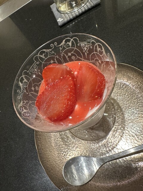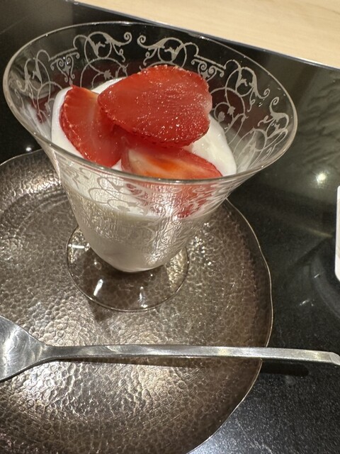 デザート 淡雪苺、和三盆クリーム、抹茶アイス