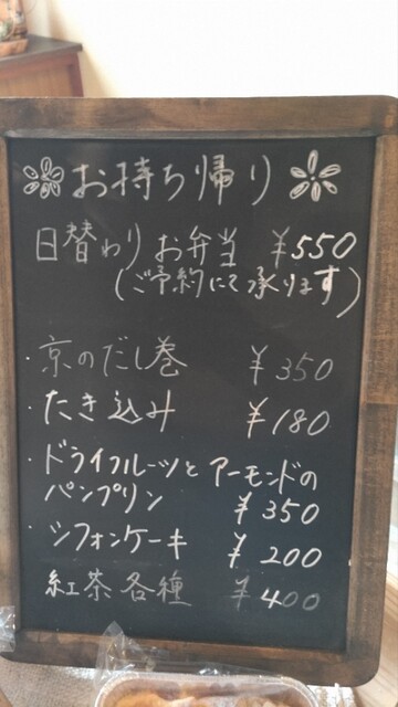 二年前位にこちらが現場だったのだが、食べたくてもいつも予約で入れなかったり。 今日は付近の現場だったのでダメ元で電話すると奇跡的に席に空きが! 迷うことなく即予約w 配膳。 笑顔が素敵な店主は料理の説明もしてくれる。 食べたら凄く美味いので「シェフを呼んでくれたまえ」と言いたくなったが膳を下げにきた時に聞いたらフレンチやイタリアンを修行していたらしい。(和も少し) メインの美味しさに驚いてしまい、これまた美味しかったデザートとドリンクの画像を撮り忘れてしまった・・・。_ト ̄|○ 女将も綺麗で素敵♪\(^o^)/ 店内の雰囲気も良く午後から仕事したくなくなる・・・w テイクアウトしたシフォンケーキと京のだし巻きも絶品だった。 炊き込みご飯買えなかったのが悔やまれる。 駐車場から店に上がる土手には四つ葉のクローバーが沢山♪\(^o^)/ 幸せな一時でした。
