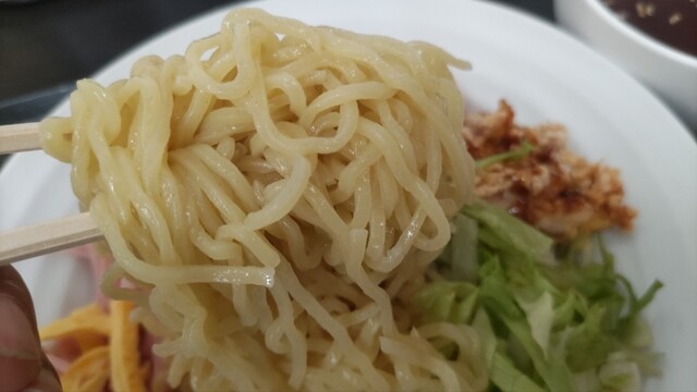 久し振りの根本商店系、冷やし中華は系列店ではここと東岡山の北京のみの提供。 必死にチャリ漕いで疲れてたのかやや酸味が足りないかと思いきやキムチを混ぜ食べたら丁度のバランス。 流石安心安定の根本グループ。 汗だくの天パでボサボサくるくる頭だったのに、バレないかと思いきやレジの奥さんから即身バレw そういえば昔、今店の娘さんは本名で電話予約したら声でバレたっけw 恐るべし・・・w 社長、川原さんも相変わらず元気で大量の弁当注文が入って臨戦態勢に入ったので退散したw