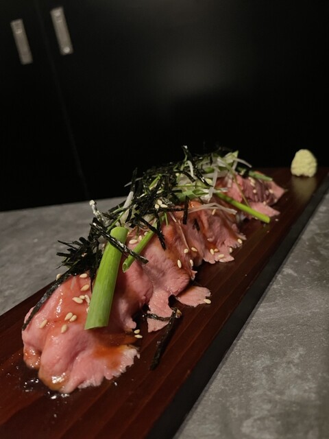 「牛タンカルパッチョ」は、サラダの代わりに頼んでもいい一品かなと思います。シャキシャキの玉ねぎと特製ドレッシングで仕上げていて薄切りの牛タンにしっかり味が染み込んでいました。