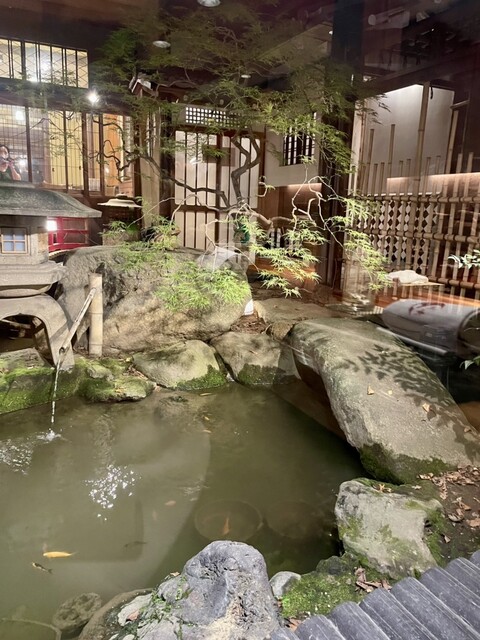 外観から日本式の和な雰囲気漂うお店で、店内も鯉が泳いでいる中庭があったりと落ち着いた空間で食事を楽しむことができます。思っていたより店内が広く、会食や記念日に最適な個室や、池を眺めながらいただくカウンター席やテーブル席があります。