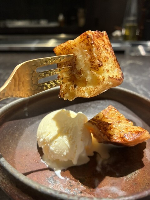 最後のデザートには、鉄板焼きを生かしたフレンチトーストにアイスがついたものが出てきました。ほんのり温かいフレンチトーストとアイスが口の中で溶け合い上質な時間を締めくくる印象でした。