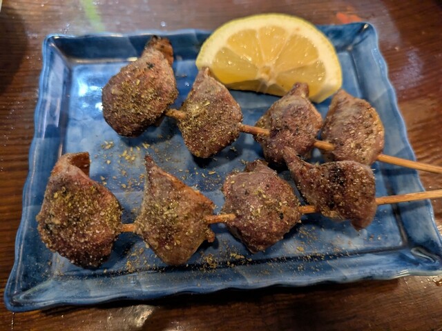 → 串焼きももちろん味噌ダレで、砂肝と皮は塩でレモンかけて食べるけどどれも全部美味しいからビックリしますよ 笑