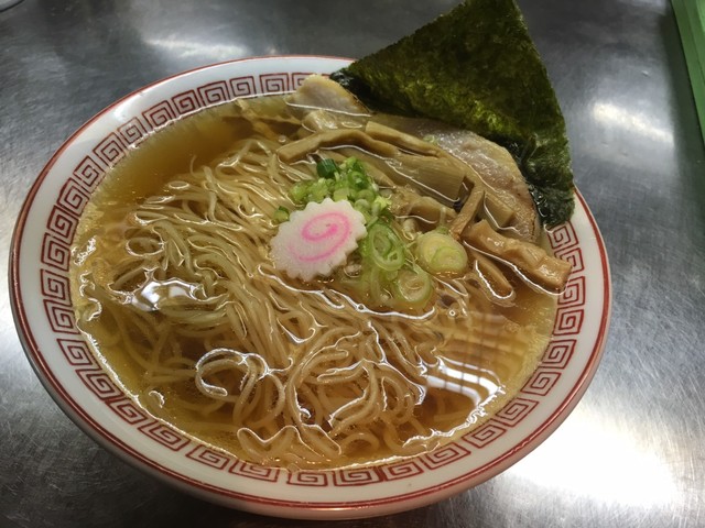 あっさりの細麺で麺をスープと一緒に啜らせる