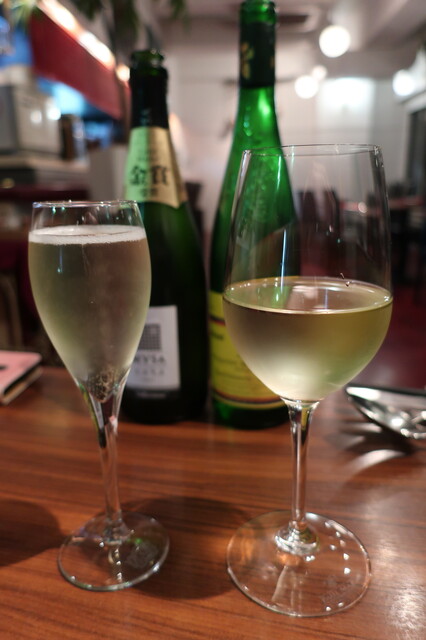 チリ産の白ワイン(ネプリナシャルドネ)をグラスでいただきながら