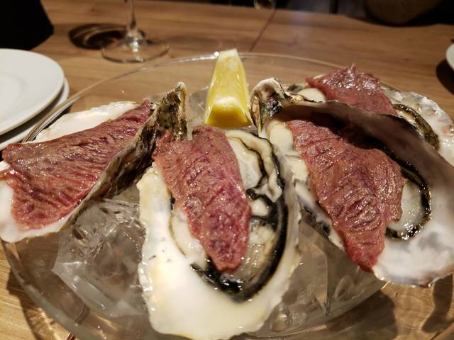 生牡蠣と黒毛和牛のコラボなんて、贅沢~