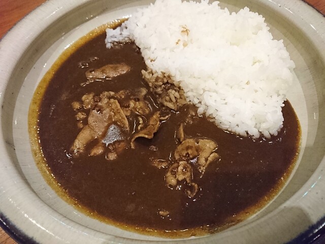 松坂豚の薄切り肉が入ったカレーで、するラン科のスパイスを使った本格的なカレー。