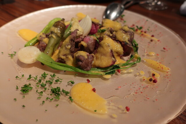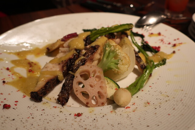 牛ヘレ肉と季節野菜のグリル あんぽ柿のソース