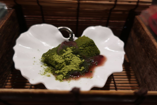 水菓子(黒糖わらび餅 抹茶焙煎黄粉 小倉餡)