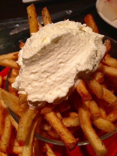 コレが噂の生クリームテイストのディップ付きポテトフライ。ウマすぎて無くなるのはえーよ。