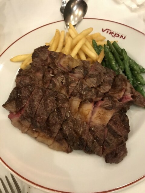 ステーキとポテトといんげん。肉がシンプルな味付けで美味しかったです。もう少し火入れしていても良かったかもしれません。また大勢で食べに行きたいなぁ。