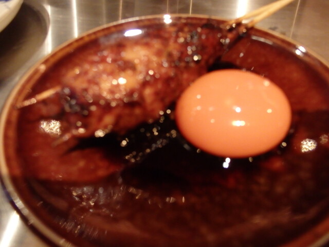 月見の黄身が大きくって、黄身の色つやも良くって甘みがある。つくねは外が香ばしくって、