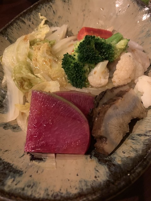温野菜は、普段食べれない堀川牛蒡、海老芋、聖護院蕪、金時人参、紅芯大根、