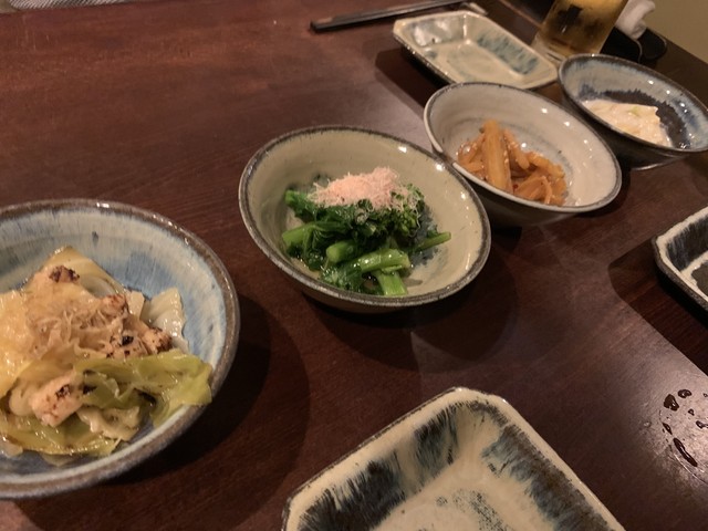 今回は、仕事仲間と行ってきました。お通しは、小鉢で種類が違うのがいいですね。