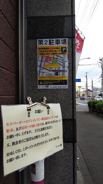 隣接駐車場が満車でしたが、親父さんが少し離れた駐車場を案内してくれました。そこに停めるとトッピング一品無料。少し得した気分です。