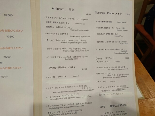 メニュー。こうやって書いてくれるのはとてもありがたい。