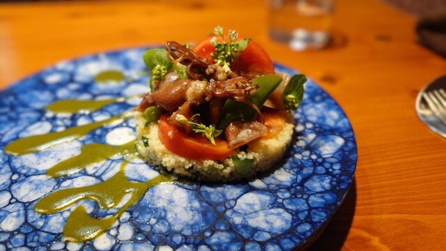前菜:ゴルゴンゾーラを使ったバスクチーズケーキ