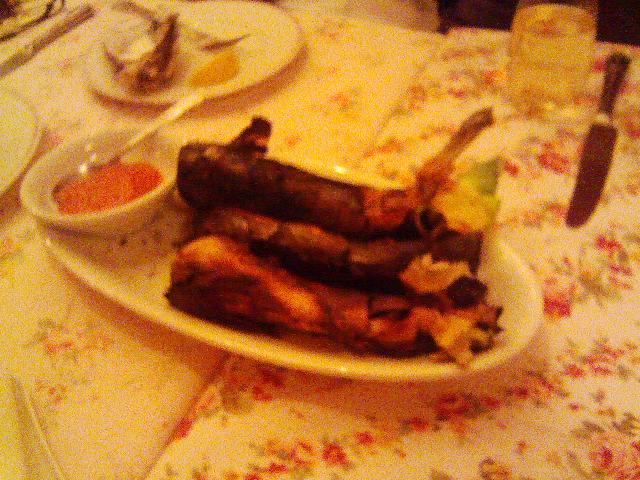 この日、驚いたのは、本日のお薦めの中に「カルソッツ」(写真)があるではないですか! カタルーニャ・タラゴナ地方で年に一度のお祭りの時に食べる伝統料理で、ネギの表面を真っ黒に焦がした料理。焦げた皮をむいてほくほくの中身を食べるというものですが、以前「ミヤカワ」で食べて大ファンになりました。ここでも食べられるとは! 季節限定なのでもし食べたい方は、今どうぞ!