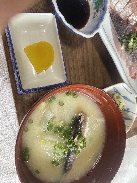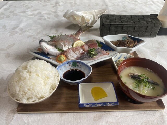 程なくして、刺身定食が運ばれてきた。店主さんより今日の刺身はチダイとアジと説明を受ける。
