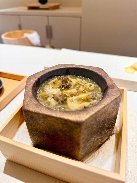 アワビは肝が肝心、身も肝心。食感もよく、味わいもよく、見ていても楽しいお料理は、ここ「神南」さんならでは。