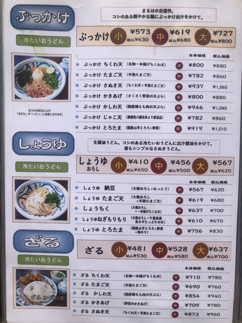 冷たいうどんは氷でしっかり締められ,太めのうどんの食感が良い感じです.