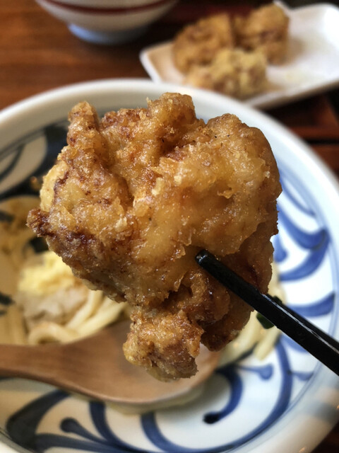 連れは温かいうどんの中盛とちくわ天,かしわ天.大盛だめならさらにざるの追加はできるかと聞くと,おひとり一つまでの縛りが発生してた.