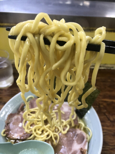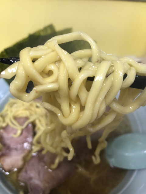 固めの指定の麺は普通よりやや固めぐらいの茹で加減.