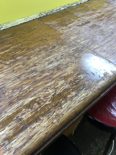 一塁側はカウンターの傾斜角が厳しいので,3塁側,いやレフト席から寸胴を眺めます.